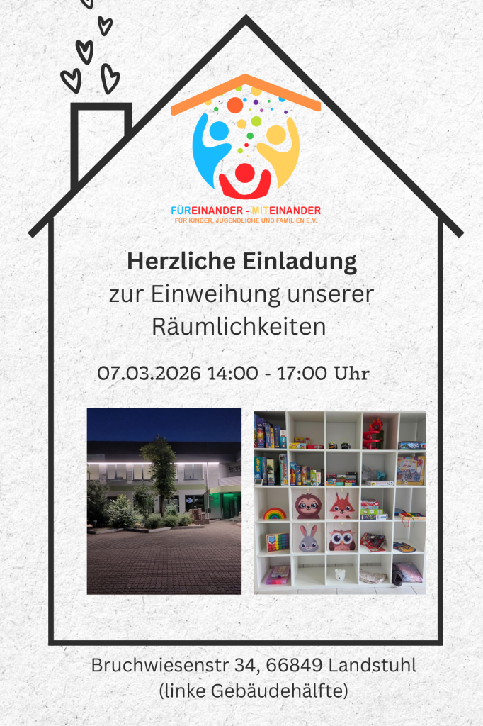 Am 07.03.2026 weihen wir von 14-17 Uhr unsere neuen Räumlichkeiten in Landstuhl ein, kommt gerne vorbei und schaut sie euch an.